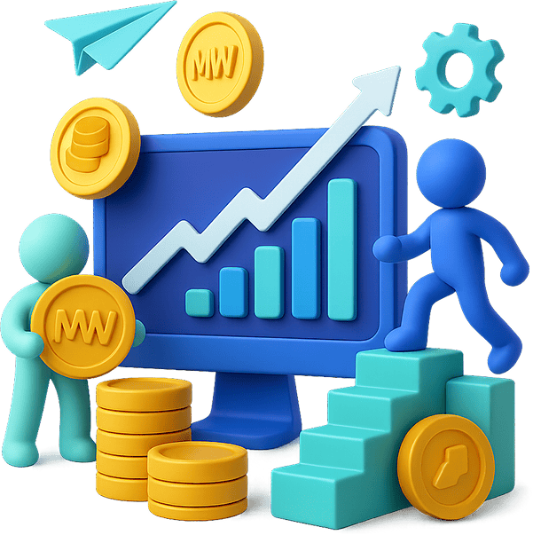 Зарабатывай MW за привлечение новых участников и партнёров. Получай бонусы от их активности и продаж.